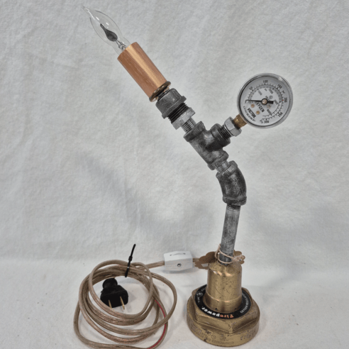 Bill Craft of Crozet presents "Craft Lights"—unique lamps created from salvaged industrial materials like old pipes, gauges, and tools. With 24 years of experience, he transforms forgotten objects into functional art pieces.