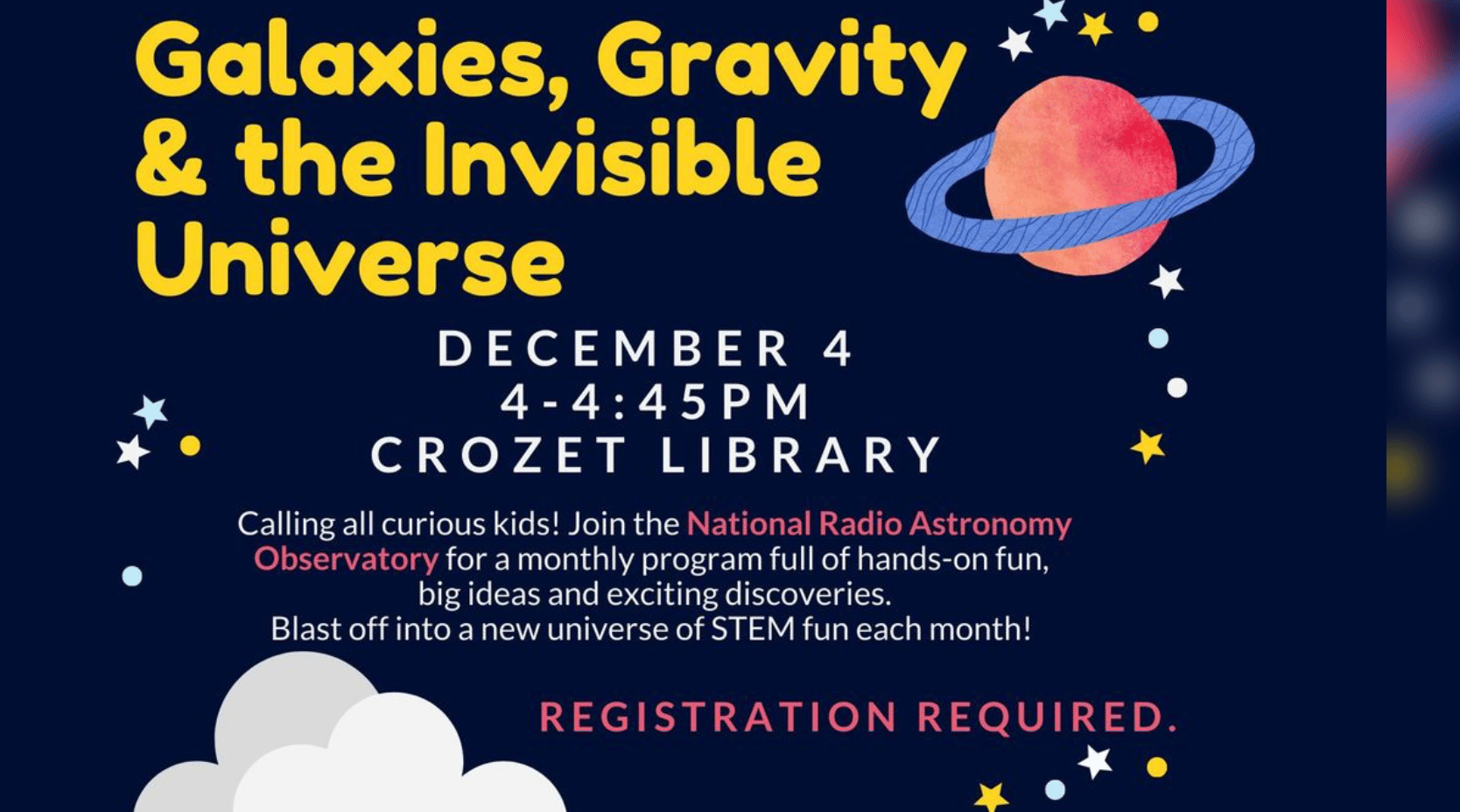 Galaxies, Gravity, and the Invisible Universe | Crozet Library | 4:00 PM - 5:00 PM | FREE