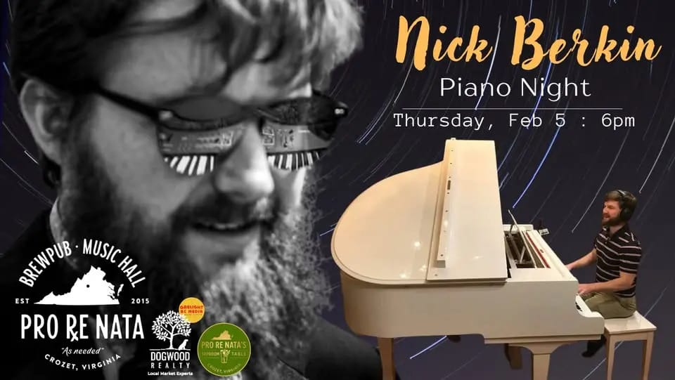 Piano Night W/ Nick Berkin | Pro Re Nata - PRN | 6:00 PM - 9:00 PM | FREE